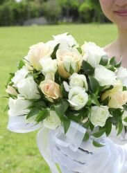 Тамада:- Дорогие друзья, наши молодожены готовы принять от Вас цветы, поздравления и подарки, которые Вы приготовили для них. Прошу, подходите к невесте и жениху